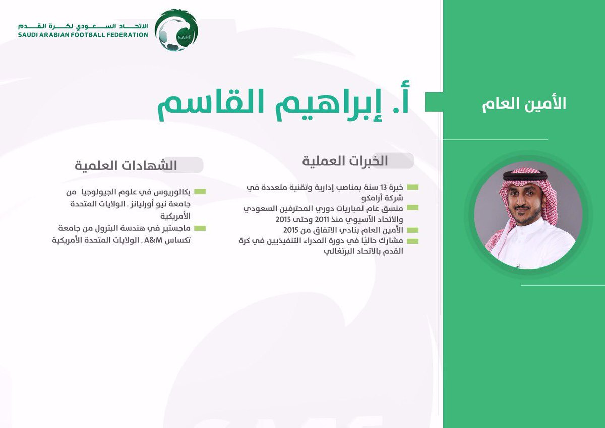 الاتحاد السعودي لكرة القدم On Twitter الاتحاد السعودي لكرة القدم يعي ن إبراهيم القاسم أمين ا عام ا